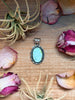 Handmade in New Mexico, USA, this elegant oval-shaped Palomino turquoise pendant features warm golden and soft blue-green hues that make this rare stone so distinctive. Set in solid sterling silver and stamped STERLING, each piece reflects exceptional Southwestern silversmith craftsmanship and attention to detail.
