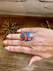 Adjustable Ring – Pink Dahlia Stone – Sterling Silver – Tia Long Navajo Handmade