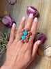Red Coral & Kingman Turquoise Sterling Silver Ring – Adjustable